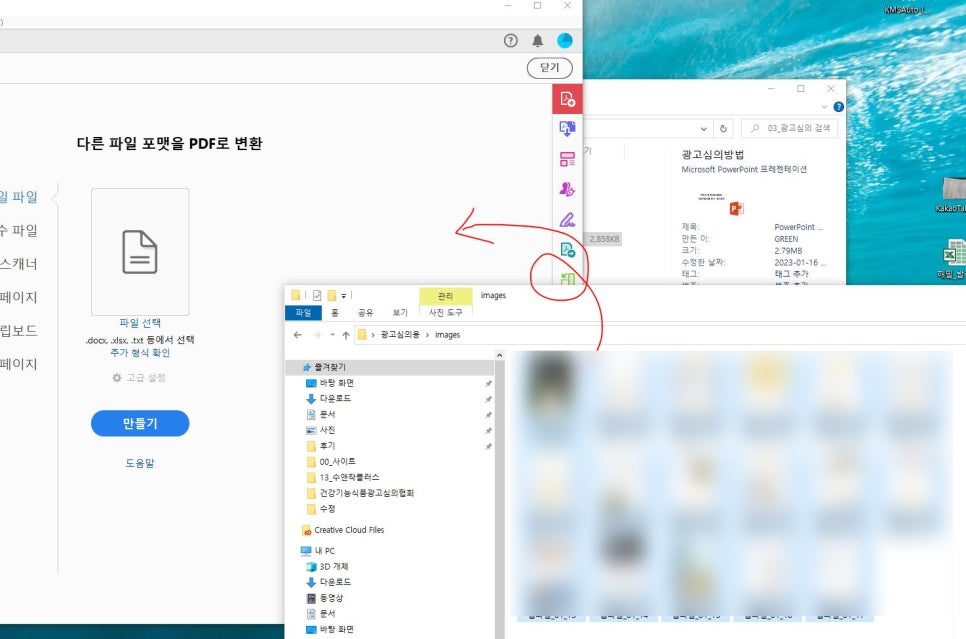 PDF 파일을 열고, 분할된 이미지를 드래그해 삽입하세요